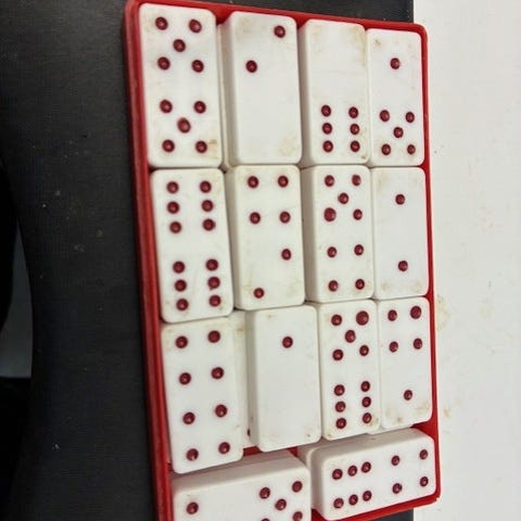Myynnissä vanha koulutarpeiden keskusliikkeen tekemä kertotaulu domino. Luultavasti on jostain sieltä noin 1950-luvulta. Muutama pala voi puuttua. Hyvässä kunnossa.