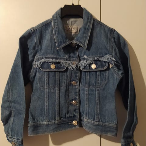 Käytetty hyväkuntoinen tummanharmaa farkkutakki 130cm. Etutaskut ja sivutaskut. Hinta 5e
