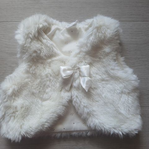 Liivi valkoista tekokarvaa. Kiinnitys edestä yhdellä napilla. Ihanan lämmin ja pehmeä.