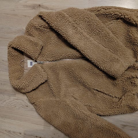 Xs kokoinen topattu takki. Edessä kaksi taskua, vyötärö- ja hiharesorit. Hupun sisäpuolella tekoturkis. Pintanyppyä paikoitellen, nypynpoistajalla saa halutessa pois.