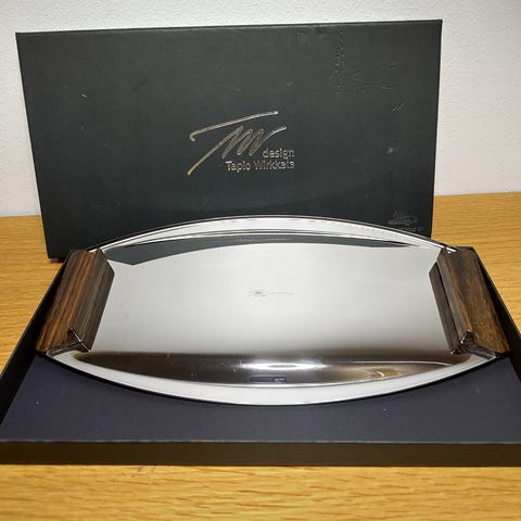 Täysin uusi ja käyttämätön design by Tapio Wirkkala teräslautanen. Toimitetaan omassa pahvikotelossaan aitoustodistuksen kanssa.