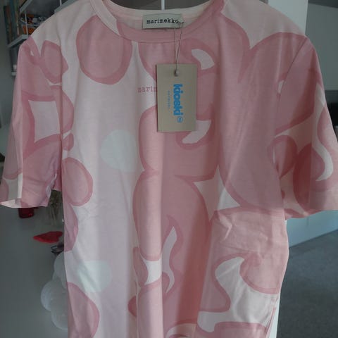 Marimekon Kioski malliston logo Placement t-paita koko L. Rinnanympärys noin 110 cm ja olka-helmapituus 73,5 cm. Unisex- malli. Nouto tai postitus automaatin kautta (ei toridiiliä).