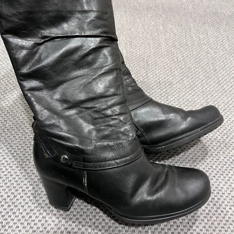 Myydään erittäin hyvässä kunnossa olevat mustat nahkasaappaat koko 5,1/2. noin 38,5.