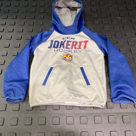 Myydään sininen huppari. Koko 116 cm. Rinnassa Jokerit logo ja hihassa KHL logo.
