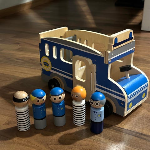 Tämä klassikkolelu on jo leikeissä hieman kulunut, mutta on ehjä ja kestävä.