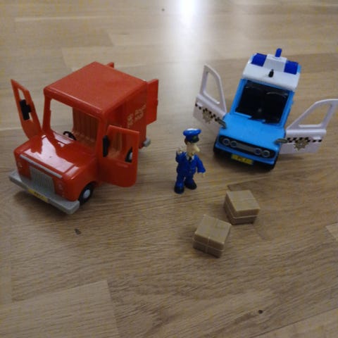 Posti Paten pakettiauto, reilu 16 cm korkea. Sisältää viisi osaa.