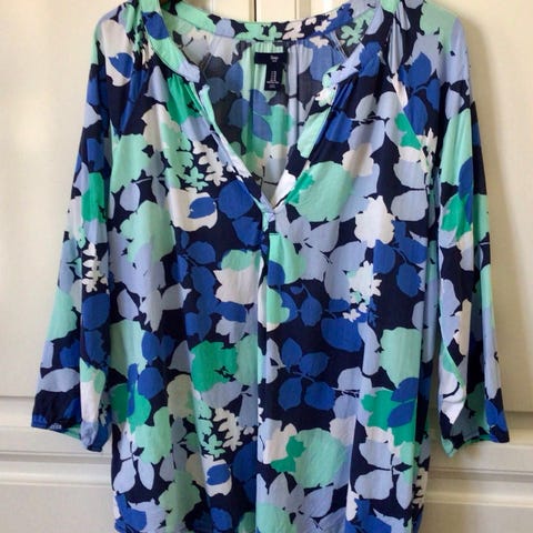 Myydään hyväkuntoinen Gap t-paita, materiaali on 100% puuvillajerseytä. Pohjaväri on luonnonvalkoinen, ja siinä on tummansinisiä palloja. Kainalo-kainalomitta on 51 cm ja pituus 63 cm.