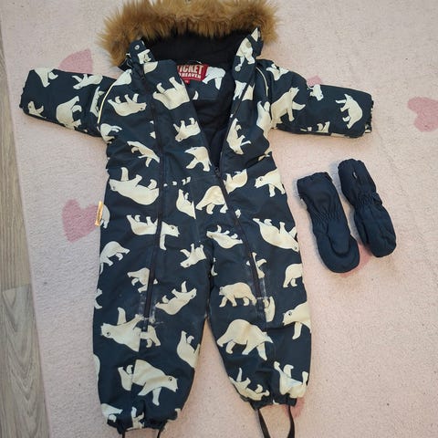 Ticket to heaven talvihaalari, jossa kätevät lumilukot lahkeissa. Ehjä, pientä kulumaa heijasteissa.