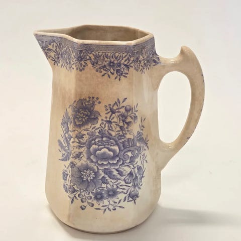 Hienossa kunnossa oleva Arabian vanha kelta-valkoinen teekannu, yksi kirpun purema pohjassa.