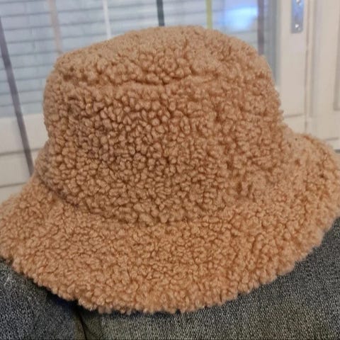 Söpö beigen sävyinen teddy bucket hattu