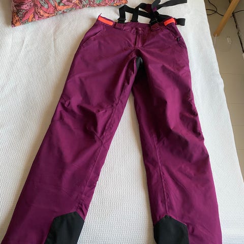 Neomondo laskettelu /toppahousut 164 cm. Vasemman jalan alapäässä pieni reikä ,lahkeissa laskettelussa tulleita jälkiä ja takamuksen vahvistuksessa pienehköäkulumaa.