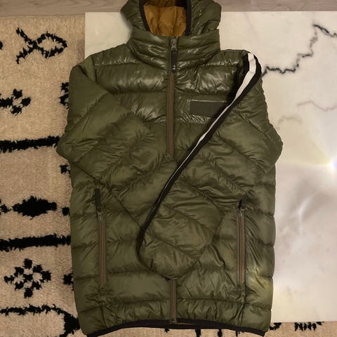 Vähälle käytölle jäänyt, tosi siistikuntoinen takki. Ainoa ”moite” on riitaan lisätty suht huomaamaton heijastin, kun takissa ei niitä valmiina ollut. Pienehköä kokoa.