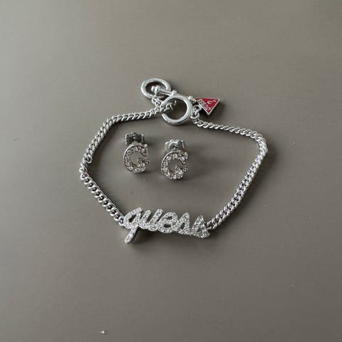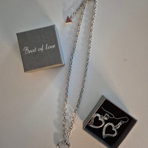 Guess Korusetti, Sydämillä, kaulakorun ketjun pituus 42 cm, Rannekoru 16 cm, korvikset - sydämet 1,5 x 2 cm