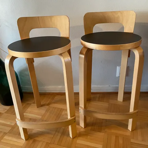 2kpl Artek K65 työtuoli / baarijakkara, koivu + musta linoleumi