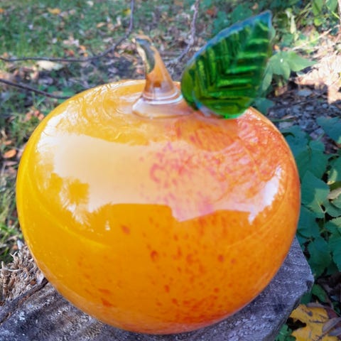 Myydään punainen lasiomena.