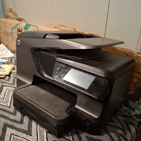Tulostin käynnistyy mutta toimintaa ei ole muuten testattu. Myydään varuilta varaosiksi/kunnostukseen.