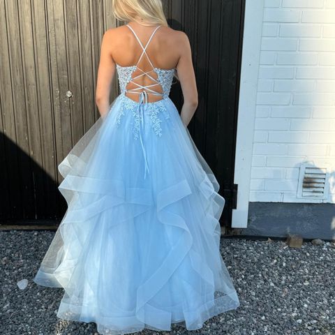 Mekon käyttäjä on ollut noin 168 cm pitkä. Mekon kanssa on käytetty korkoja sekä vannehametta.