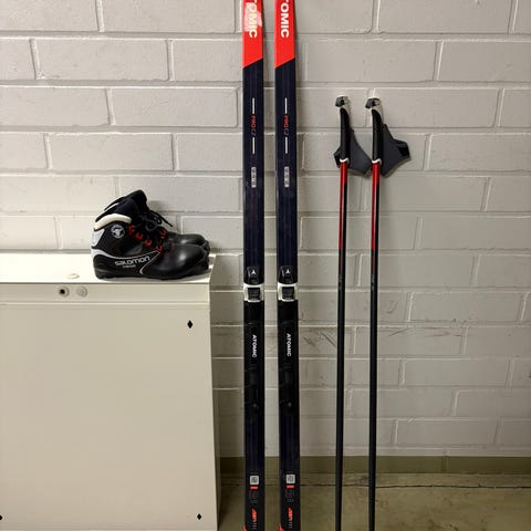 Tämä suksisetti sopii noin 130 cm-140 cm pituiselle hyvin.