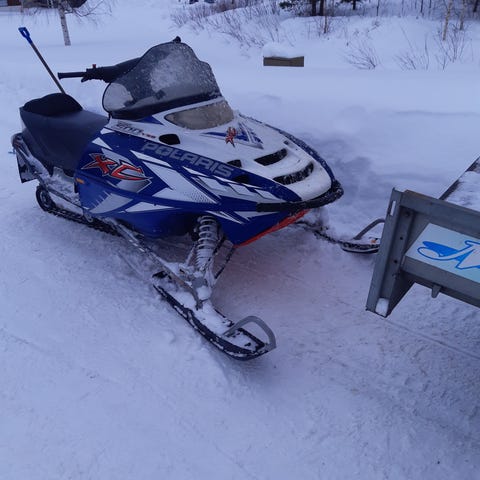 Eli ylimääräisenä varaosina myyntiin veljeni puolesta kuvien XC Polaris. Luotettavampi Fuji:n 488 nestekone vaihdettu alkuperäisen libertyn tilalle. Telastoa laskettu alemmas.