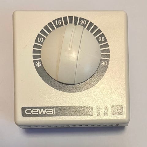 VLM vesivaraajan termostaatti (käytetty). Vaihdoin kun piti käydä toisinaan nollaamassa, mutta vika olikin sulaketaulussa. Todennäköisesti ehkä, ollut käytössä viitisen vuotta.