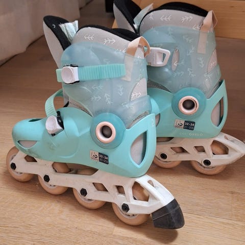 Rullaluistimet säädettävä koko 29-32. Joitakin käytönjälkiä löytyy (katso kuvat tarkkaan) Vähän luistellut kuitenkin. Nouto tai postikulut ostajalle. Postitus alkuperäisessä paketissa.