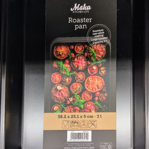 Hyväkuntoinen uunivuoka uuniruokien valmistukseen. Tähän vuokaan suunniteltu ja tehty kansi kuuluu vuokaan. Se helpottaa ruokien kypsyttämistä hitaasti uunin jälkilämmössä. Nam 😋