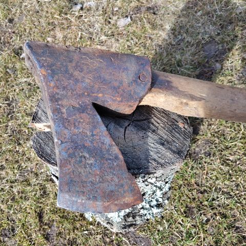 Myydään kuvien mukainen käyttämätön kirves, luultavasti saksalainen. Paino 1 1/2 lbs eli n. 0.6 kg, kokonaispituus 400. Varsi käsittelemätöntä koivua.