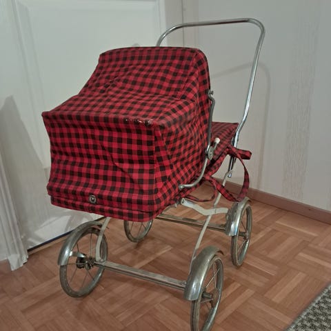 Antiikkiset koriste nukenvaunut korkeus n. 31 cm pituus n. 25 cm leveys n. 14 cm