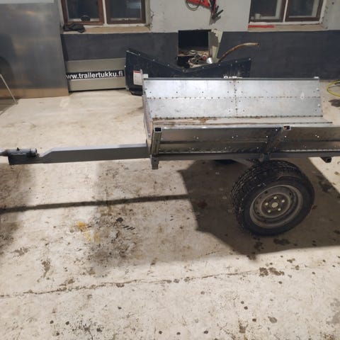 Moottoripyörän peräkärry,ei rekisterissä.Kärryssä on iskarit ja lehtijouset.