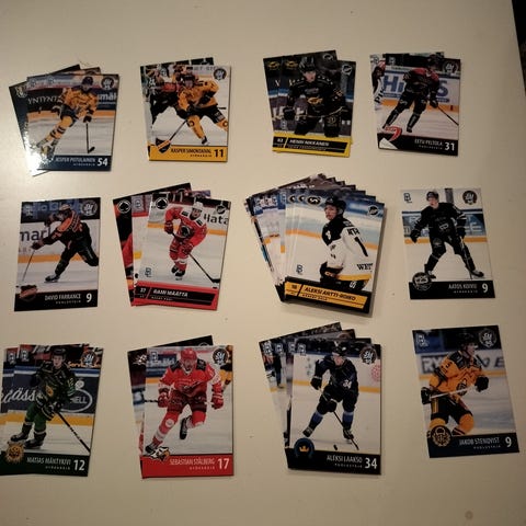 Myydään laatikollinen jääkiekkokortteja 90-luvulta, seassa jotain erilaisia kulta- ja hopea tähdellä olevia.