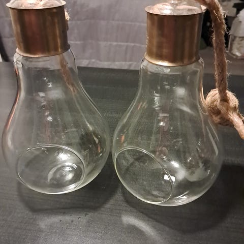 Lasiset, ripustettavat hehkulampunmuotoiset koristeet
