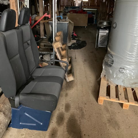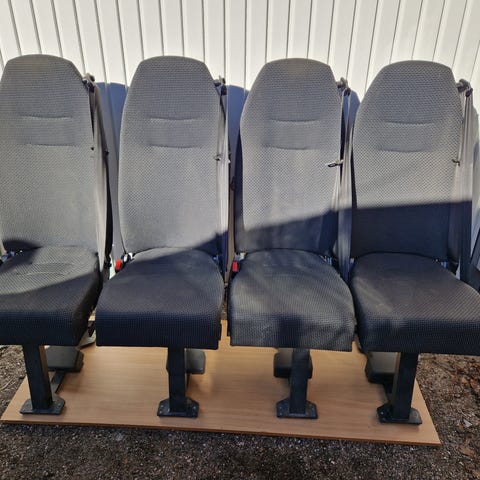 Näiden lisäksi löytyy myös sprinter pikkubussin penkkejä, ainakin kahta eri kuosia. Yhteensä n. 20 istumapaikkaa.