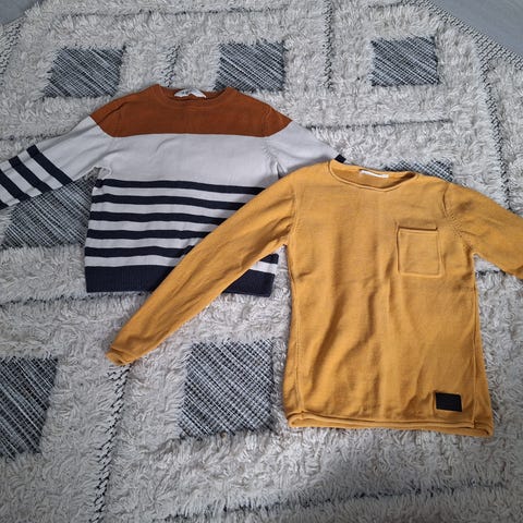 2 x neulemekko, neulepaita ja neuletakki. Siistejä. Koko 110 cm. 12€ spk.