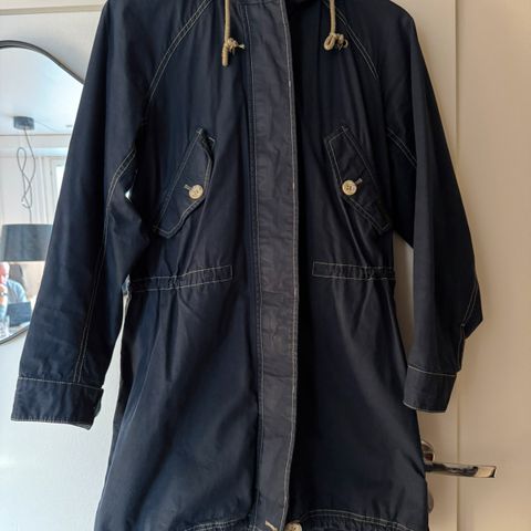 Tummansininen Peak Performance pitkä takki irrotettavalla tikkitakilla. Ilman tikkitakkia takkia voi käyttää pitkälle kevääseen ja syksyyn. Takki siistissä hyvässä kunnossa. Kauluksen sisäpuolella hieman vaalentumaa. Koko XS.