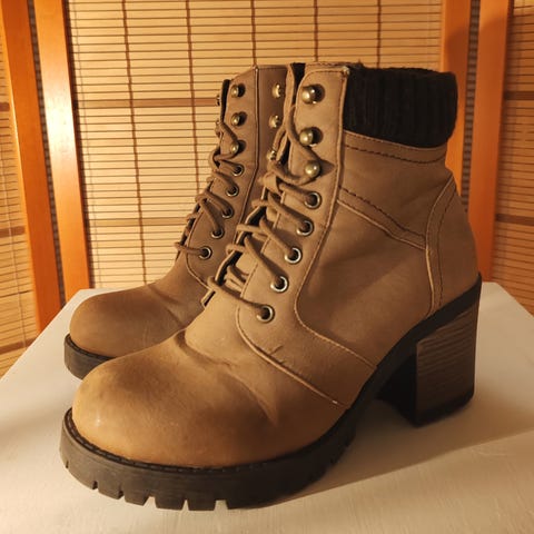 Paljon kävelty, mutta kantalapun vaihdolla vielä monta vuotta käyttöaikaa. Korko n. 5 cm.