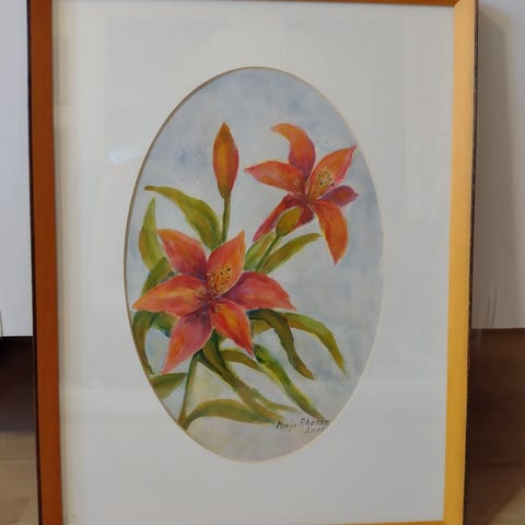 Taulu, maalaus, sisustustaulu, abstrakti, turkoosi, oranssi, kukka