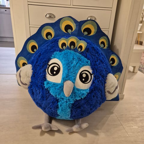 Pehmeällä karvalla päälystetty jumppapallo joka esittää apinaa tai muuta hahmoa. Siististi tehty ja käytetty vain koristeena. Pallossa on kantoripa ja aukko josta näkyy pallon napa. Sen kautta pallon ilman voi ehkä poistaa tai lisätä, olettaisin mutta en ole kokeillut.