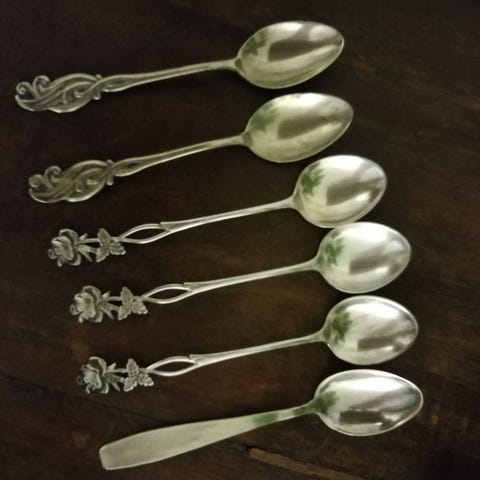 Myydään alpakkalusikoita 5 kpl, paino 87 g