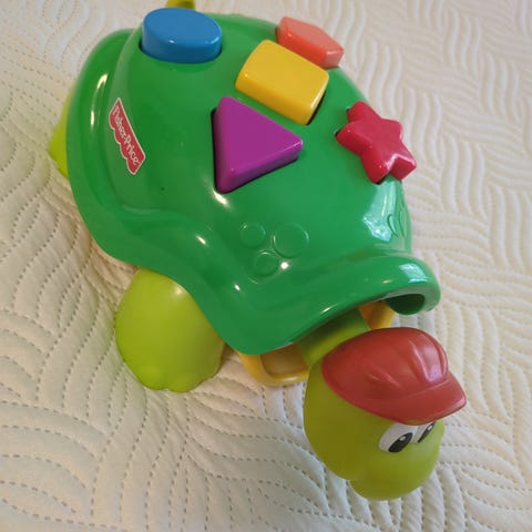 Myydään lelusetti. Fisherprise kilpikonna. Pitää ääntä liikuteltaessa. Tupperware palikat 15kpl. Paikoissa kirjaimet ja ne voi avata ja liittää yhteen. Vanha pallo. Kaksi kuppi settiä. Voidaan rakentaa torniksi. Toimii hyvin hiekkalaatikolla ja vesileikeissä. Tämä Koko setti 8e.