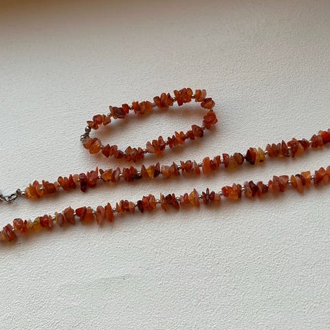 2-kerros kaulakoru luonnollisilla pienillä karneolihelmillä,kivet tummenevat kauniisti lukosta alaspäin,vanha handmade kaulakoru,leimaton,magneetti ei tartu,
