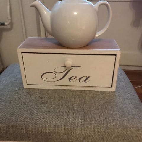 Myydään puinen teelaatikko, jossa viisi lokerikkoa. Mitat: leveys 39,5cm, korkeus 7cm ja syvyys 9,1cm. Molemmista reunoista puu hieman elänyt ja kaartunut, muuten hyvässä kunnossa.