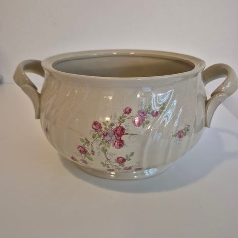 Arabian Pikkuruusu-tarjoilulautanen, vaaleanpunareunainen. Halkaisija 25,5 cm. Erittäin siisti ja kiiltävä lasite. Reunassa muutama erittäin pieni virhe, jotka huomioitu hinnassa.