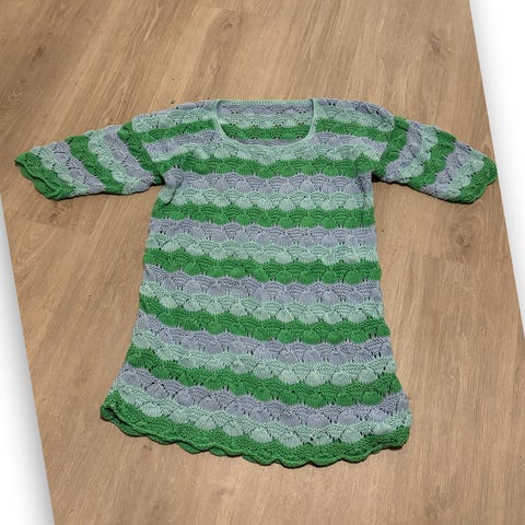 Kaunis käsintehty teal-värinen neulepaita, jossa on etupuolella ainutlaatuinen kuvio, joka muistuttaa tyyliteltyä puuta tai kasvia. Kuviossa on sininen runko ja oksat sekä punaiset lehdet tai kukat. Paita on mukava ja teksturoitu, täydellinen viileämpiin säihin. Tämä neulepaita on erinomaisessa kunnossa ja valmis löytämään uuden omistajan.