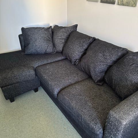 Myyn 2 osaisen tukeva runkoisen kulmasohvan irto tyynyin ja irto päällisin,mitkä pesty 12/2025. Ja 04/2026 toisesta sohvan osasta,mutta toisesta vielä pesemättä.Lisuke patjojen kankaita ei ole ommeltu kiinni pesujen jälkeen. Putkijalat on kierteillä kiinni niin helppo irrottaa ja kummassakin osassa 4 kappaletta niin sohvat voi pitää erilläänkin. mutta saa liitettyä yhteen kiinnikkin.