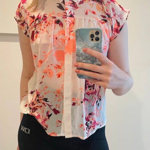 Sifonki pusero,valkoisella pohjalla mustia pieniä palloja