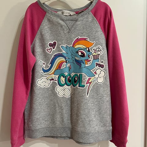 Ihana vaaleanmintun värinen My Little Pony yömekko, pienet röyhelöt hihansuissa. Kokomerkintä 8v/128, mutta meidän 122 käyttävälle puristaa kainaloista, joten ainakin jos ei ole kovin hoikka, niin parempi max 116 kokoiselle. Ehjä, mutta takaa bongasin haalean pikku tahran.