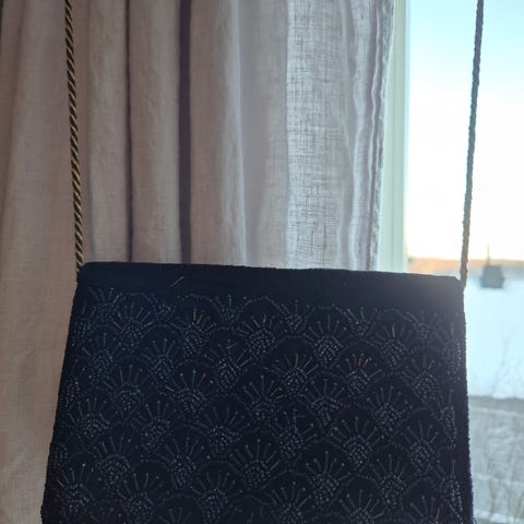 Paljetein ja pitsein koristeltu juhla käsilaukku,leveys 20 cm,korkeus 13 cm 18+ postitus 6