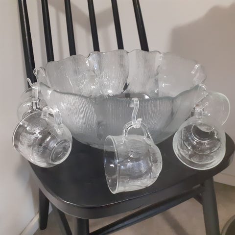Booli malja, kuusi pientä annos maljaa ja kauha.