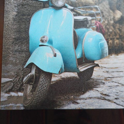 Vespoja eri vuosilta. Kyltin mitat ovat 30x20cm, nurkissa valmiit reiät. Uusi, muoveissa eli heikentää vähän kuvan laatua.