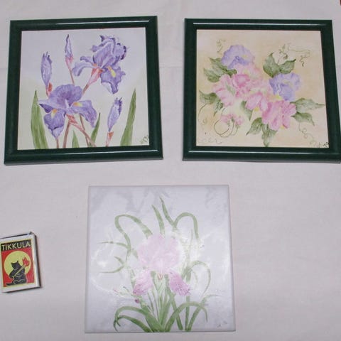 Kolme kaakelia: Karotti taulu ja kaksi kaakelia. Yhteishintaan 7 eur.